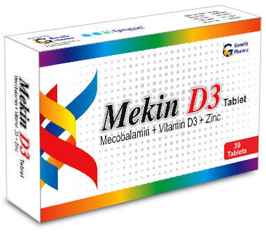 MEKIN D3 is a dietary supplement that combines Mecobalamin (active form of Vitamin B12), Vitamin D3, and Zinc to support overall health and well-being.